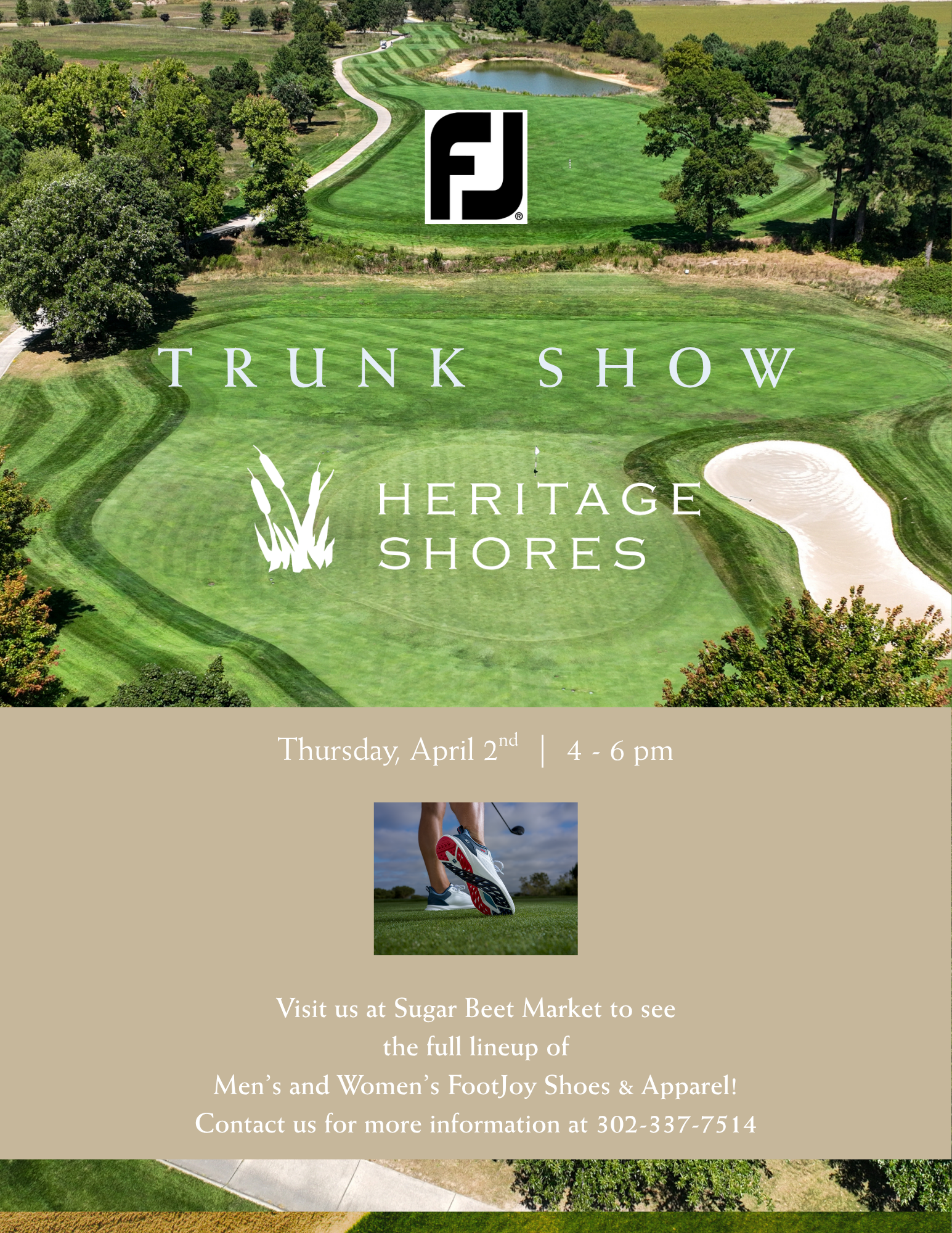 SPRING GOLF CLINICS START MARCH 24TH!!!! LADIES CLINIC EVERY TUESDAY MEN’S CLINIC EVERY WEDNESDAY 12 P.M.-1 P.M. $25/SESSION LADIES CLINIC INFORMATION MEN’S CLINIC INFORMATION FOOTJOY TRUNK SHOW THURSDAY, APRIL 2ND 4 P.M.-6P.M. FOOTJOY TRUNK SHOW INFORMATION